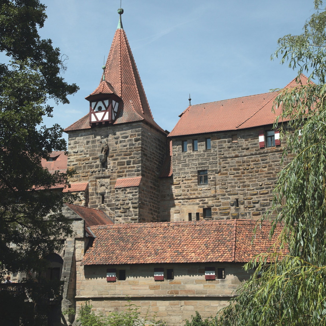 Die ehemalige Zugbrücke ist längst verschwunden, nur die Löcher für die Ketten kann man im Torbereich erahnen. Das Schloss beherbergte den Pfleger, der für die Stadt Nürnberg die Oberaufsicht über Lauf inne hatte. Später zog das kgl. bayrische Amtsgericht ein, bevor es eine Außenstelle der Akademie der bildenden Künste wurde.