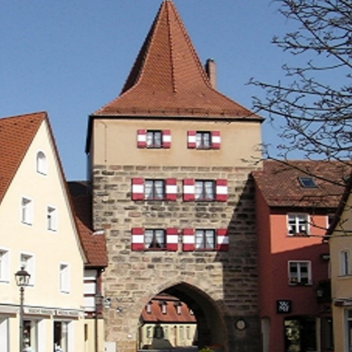 Die Laufer Stadtmauer hatte drei Tortürme: das Hersbrucker-, das Nürnberger- sowie das heute nicht mehr erhaltene Wassertor zur Pegnitz hin. Die Errichtung der Mauer und der Türme erfolgte wahrscheinlich im 14. Jhd. als Lauf das Stadtrecht verliehen wurde. Dies schloss das Privileg mit ein, eine Stadtmauer haben zu dürfen. Die Türme waren mit Wächtern besetzt und die Tore wurden nachts verschlossen.
