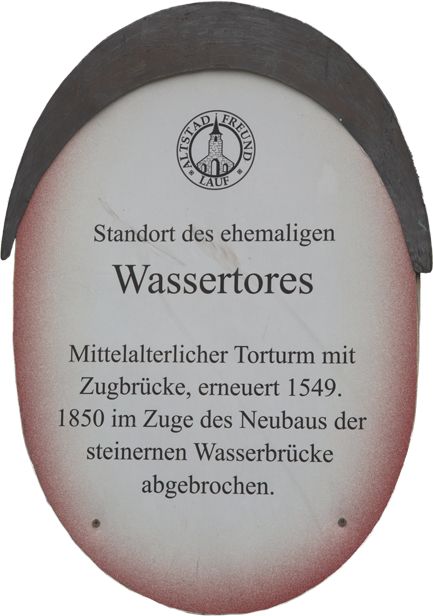 Bis 1967 war die Wasserbrücke (ursprünglicher Name: Wassertorbrücke) die einzige für den Fuhr- und Autoverkehr geeignete Flussüberquerung Laufs und damit die wichtigste Lebensader zwischen den beiden Stadtteilen.