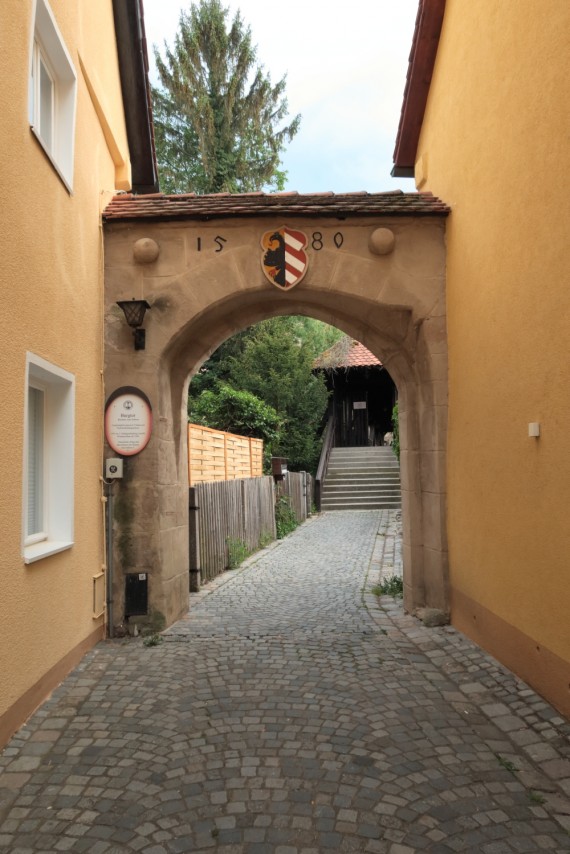 Auch das Burgtor war zunächst als massiver Torbau mit einem Fachwerkobergeschoß errichtet worden, der dann jedoch im 2. Marktgrafenkrieg im Jahr 1553 in Schutt und Asche gelegt wurde. Erst 1580 war ein Wiederaufbau möglich. Auf ein Torhaus wurde verzichtet, es entstand der heute noch erhaltene schlichte Torbogen. Ab dem Jahr 1827 wurde die nächtliche Schließung der Stadttore aufgegeben. Ab da wurdn dann auch die hölzernen Torflügel nicht mehr benötigt.