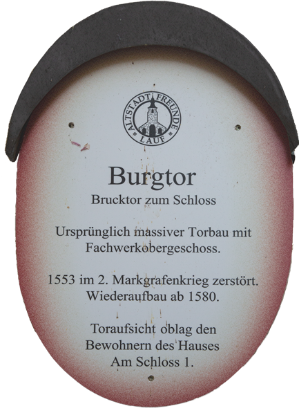 Wie viele Tore durchbrachen in früheren Zeiten die Laufer Stadtmauer? Es waren einmal fünf, von denen heute noch vier vorhanden sind. Gut bekannt sind das Nürnberger Tor im Westen und das Hersbrucker Tor im Osten der Altstadt, mit ihren mächtigen Fachwerküberbauten. Ein weiteres Tor dieser Bauart stand an der Wasserbrücke, wurde aber schon im Jahr 1850 aufgelassen.