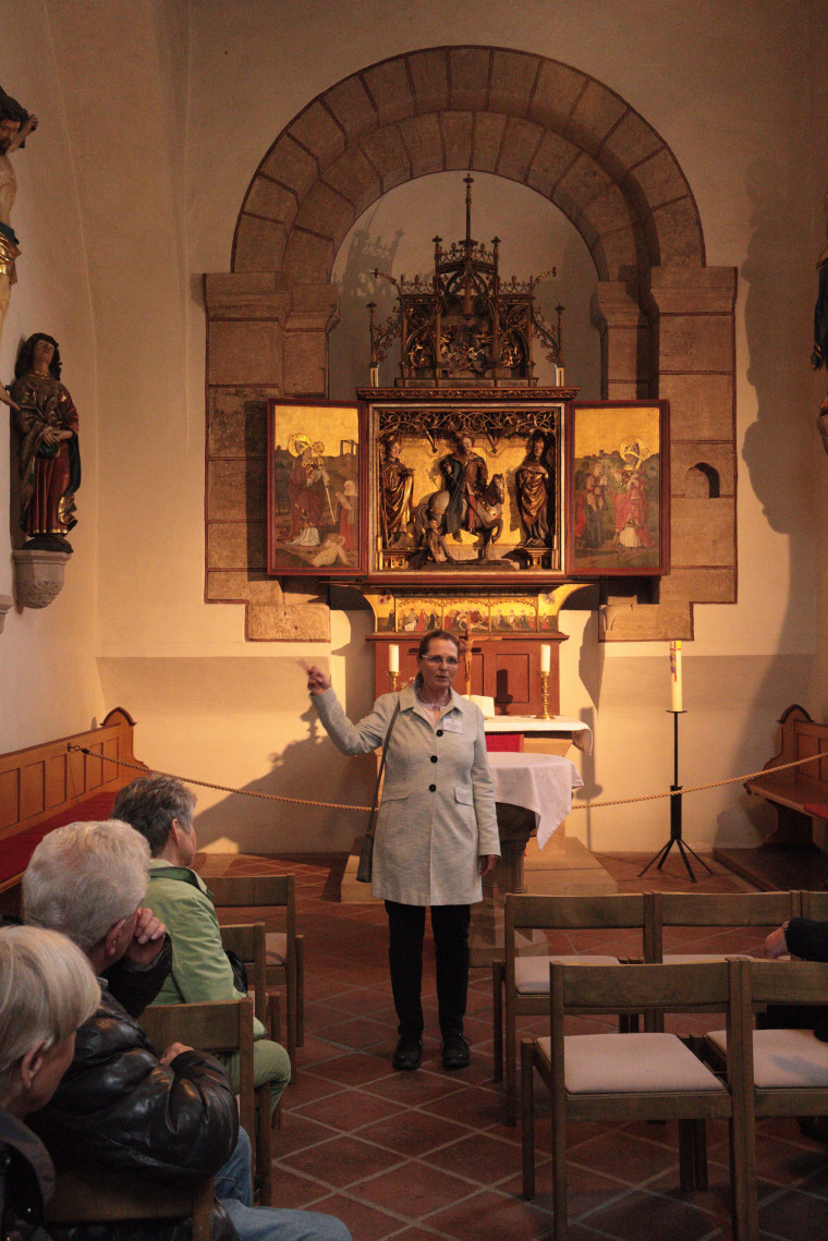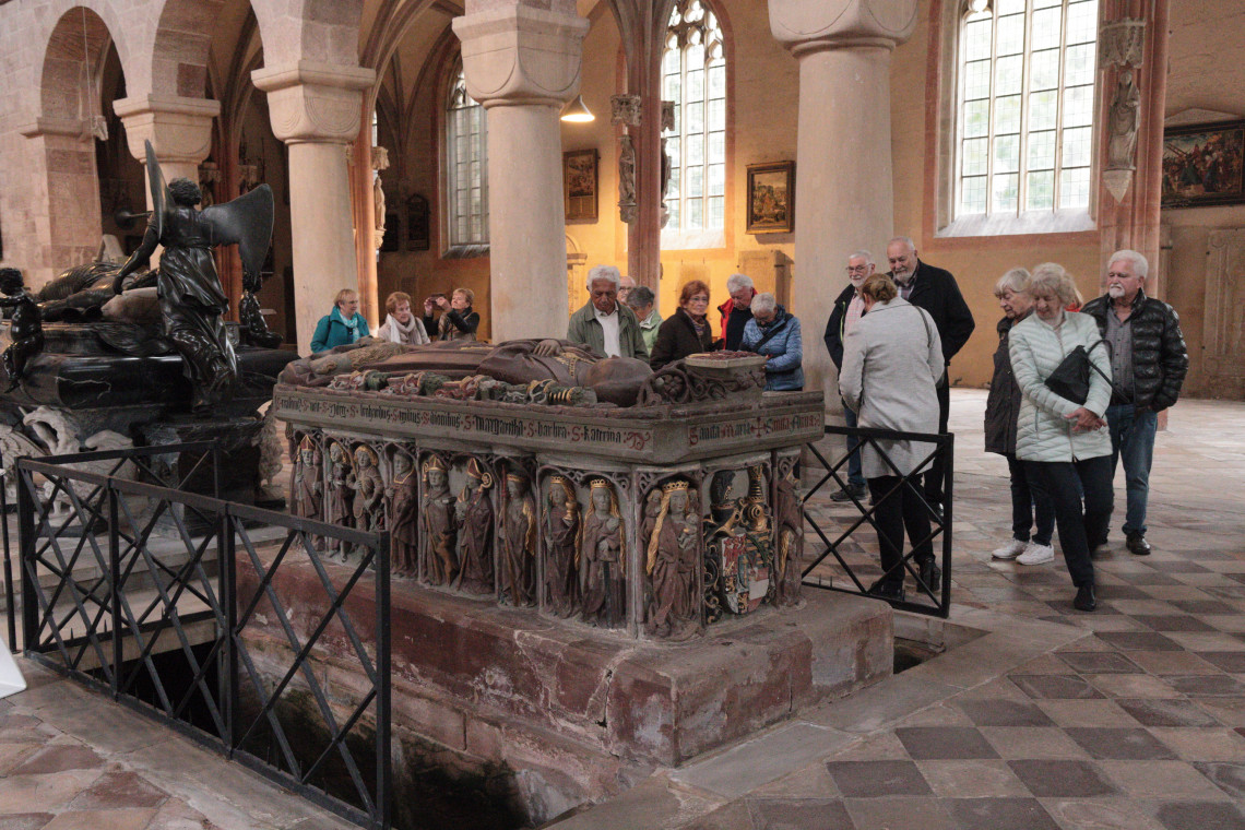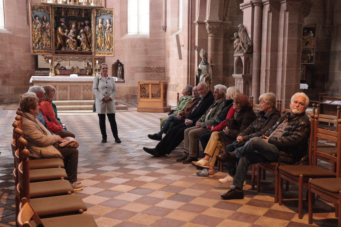 Unterbrochen wurden die Führungen durch eine Kaffeepause im Religionspädagogischen Zentrum Heilsbronn in der „Neuen Abtei“ des ehemaligen Zisterzienser Kloster Heilsbronn. Bei Kaffee und Kuchen kamen einer Teilnehmerin auch Erinnerungen an Seminare in diesem Haus, die sie während ihres Studiums hier besuchte.