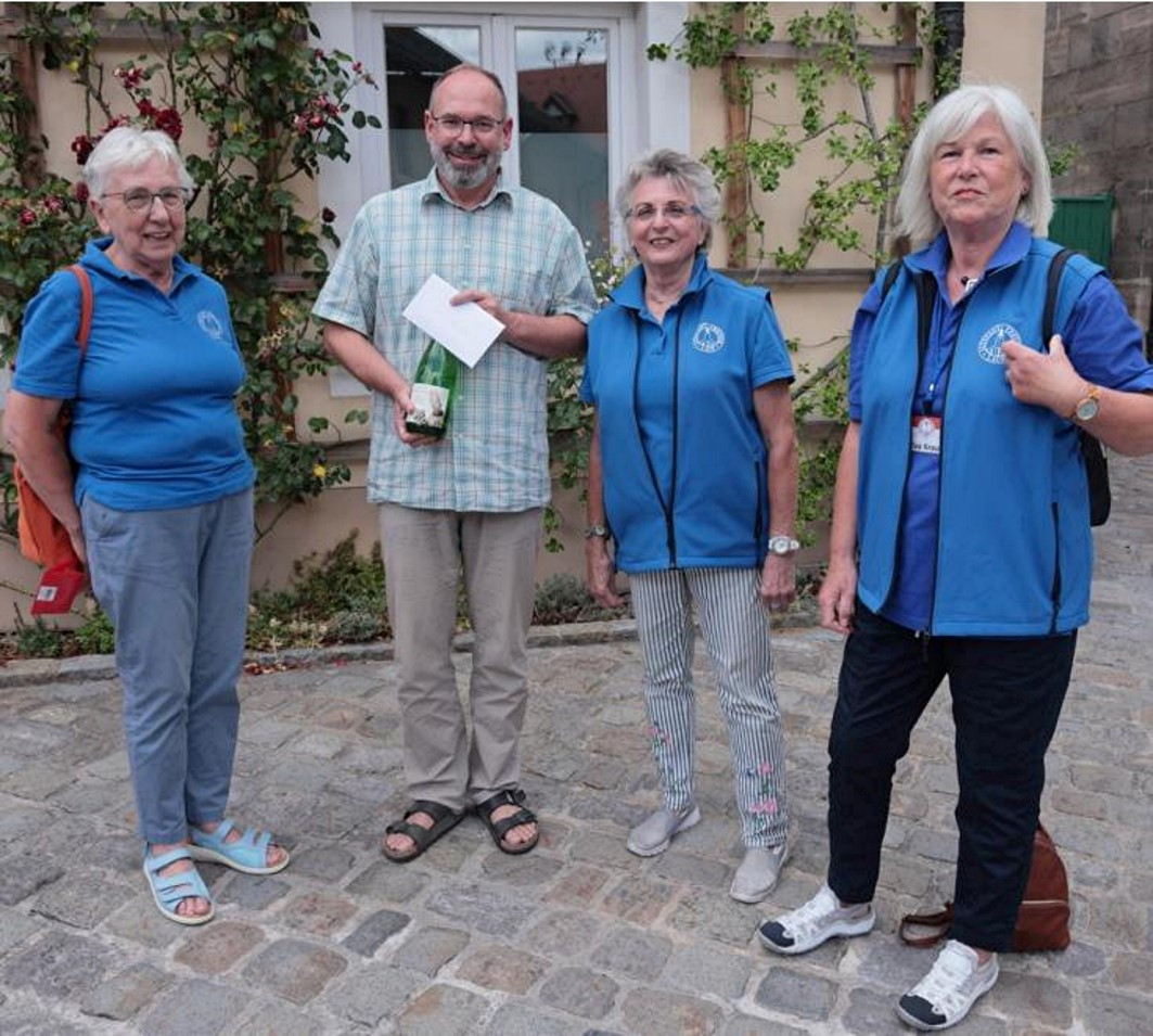 Lauf – Spende für ein Denkmal: Auf den Turm der Johanniskirche zu steigen, ist für manche Laufer ein jährlich wiederkehrendes Ereignis. Die Turmöffnungen und das meist vorher stattfindende Bläserkonzert vom Balkon des Turmes erfreuen sich ganz besonderer Beliebtheit. Zwei Führer erwarten die Besucher, die meist atemlos nach 130 Stufen oben ankommen, und erzählen über das Leben des Türmers und seiner Familie in der Wohnung auf dem Turm. Der Kirchenturm und die Kirche brauchen ständige Pflege und Wartung. Pfarrer Hanstein freute sich deshalb sehr über eine Spende von 300 Euro, die die Altstadtfreunde Lauf, Monika Pöhlmann, Vorsitzende, Marlies Reuter, stellvertretende Vorsitzende, und Evi Kraus vom Helferteam der Altstadtfreunde ihm überreichten.