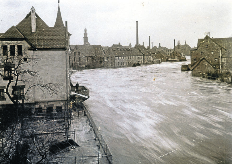 Auch 1849 musste das Pegnitztal darunter leiden. Überragt wurde dies allerdings durch die verheerende Flutkatastrophe am 4./5. Februar 1909, wo die Pegnitz eine gewaltige Wassermenge zu bewältigen hatte. Anstelle von den durchschnittlich gemessenen 10-12 cbm pro Sekunde flossen enorme 430 cbm pro Sekunde durch das Stadtgebiet.