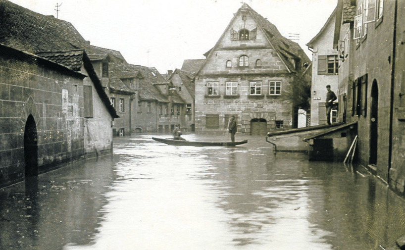 HOCHWASSER Die Pegnitz als reißender Fluss, die Altstadt von Lauf unter Wasser: Was 1909 geschah, hat die Stadt nachhaltig verändert. Bei einem Stadtrundgang entdeckten die „Altstadtfreunde Lauf“ das Erbe des Jahrhundert-Hochwassers.