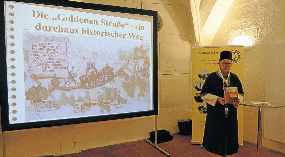 Das reich bebilderte Buch, entstanden in 30-jähriger Recherchearbeit, illustriert ebenso wie die Lesung die wesentlichen Stationen der „Goldenen Straße“ zwischen Nürnberg und Prag. Anhand von repräsentativen Bauwerken, Schlaglichtern und Geschichten werden die Orte an diesem bedeutenden Handelsweg des Mittelalters vorgestellt.