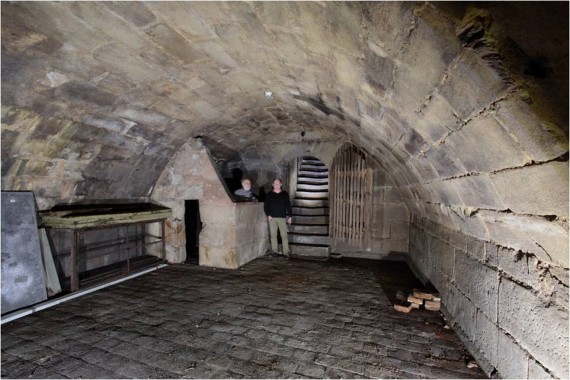 Eine 15 Meter lange Treppe führt hinab in das ehemalige Chemikalienlager des Apothekers. Der Kellerraum ist 5,43 Meter breit und 9,64 Meter lang, die Gewölbehöhe beträgt 3 Meter. Das Gewölbe beginnt nach 1,12 Meter ab der letzten Treppenstufe und verfügt über mehrere Belüftungsschächte.