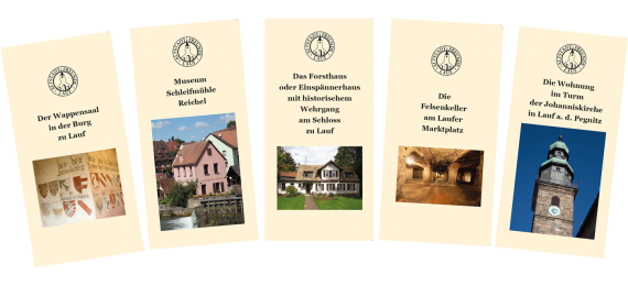 Mit den Flyern stellen wir in kurzer Form die von uns betreuten bzw. gezeigten Sehenswürdigkeiten vor. Natürlich soll damit das Interesse geweckt werden, diese Highlights der Laufer Historie auch im Original kennen zu lernen.