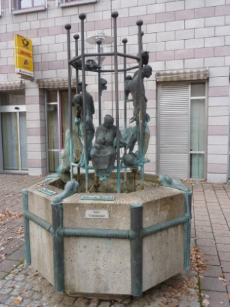 Patenschaft für Brunnen (mit den Laufer Originalen) vor Laufer Postamt.