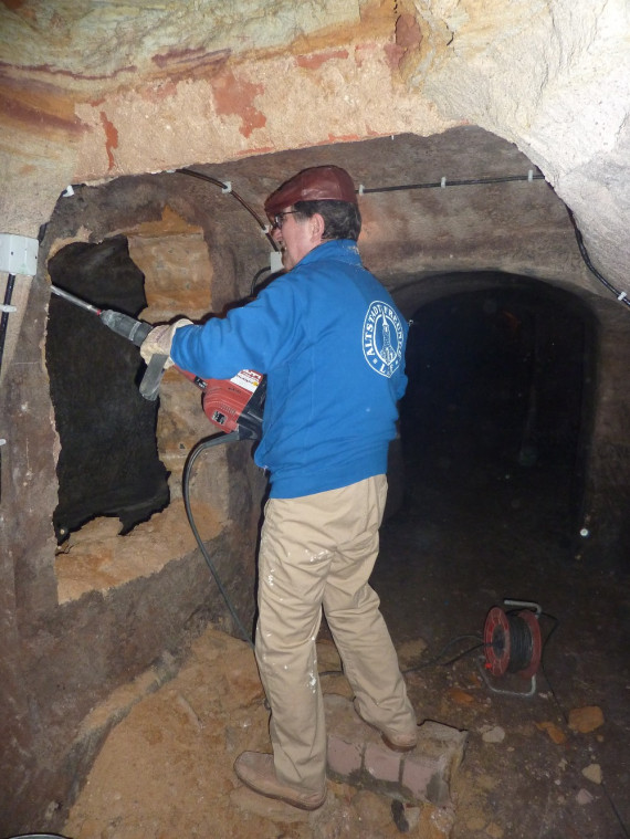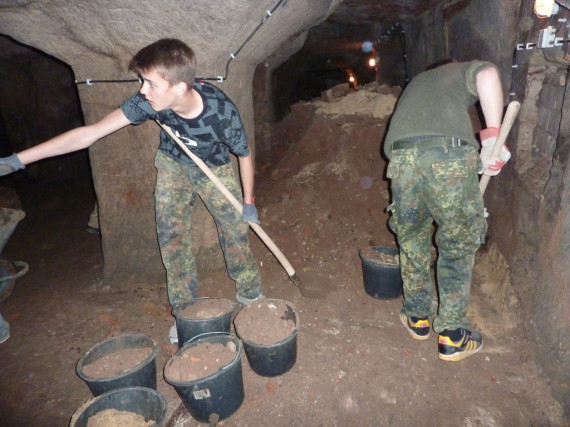 Zwei Schutträumungsaktionen mit Jugendlichen in den Felsenkellen. Ziel: Bessere Durchlüftung und zweiter Ausgang.